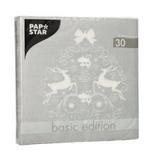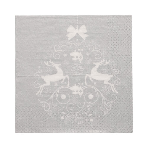 30 Servietten, 3-lagig 1/4-Falz 33 cm x 33 cm silber "Deers Couple"